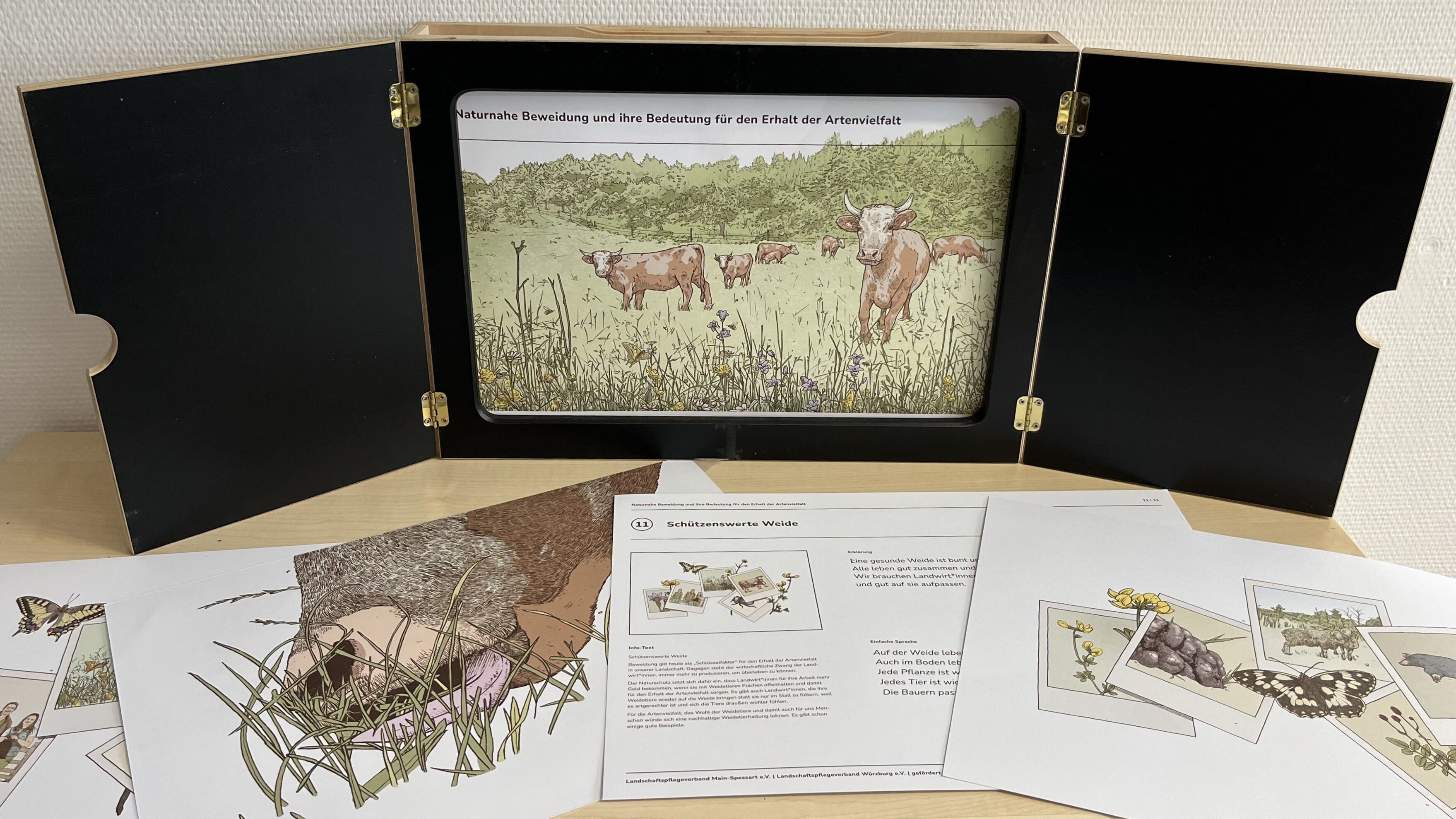 Das Projekt will diese Lücke in Form von Bildersätzen und Textmaterialien für die Aufführung im Kamishibai schließen. Dazu werden verschiedene Module zum Thema „Beweidung“ für die Schule bzw. Kindertagesstätten entwickelt. Mit der aufklappbaren, ursprünglich aus Japan stammenden Mini-Bühne kann so Wissen über Weidetiere, ihre Haltung und ihren Einfluss auf Natur und Landschaft kindgerecht vermittelt werden. Ziel sind erprobte Materialien für den bayernweiten Einsatz.