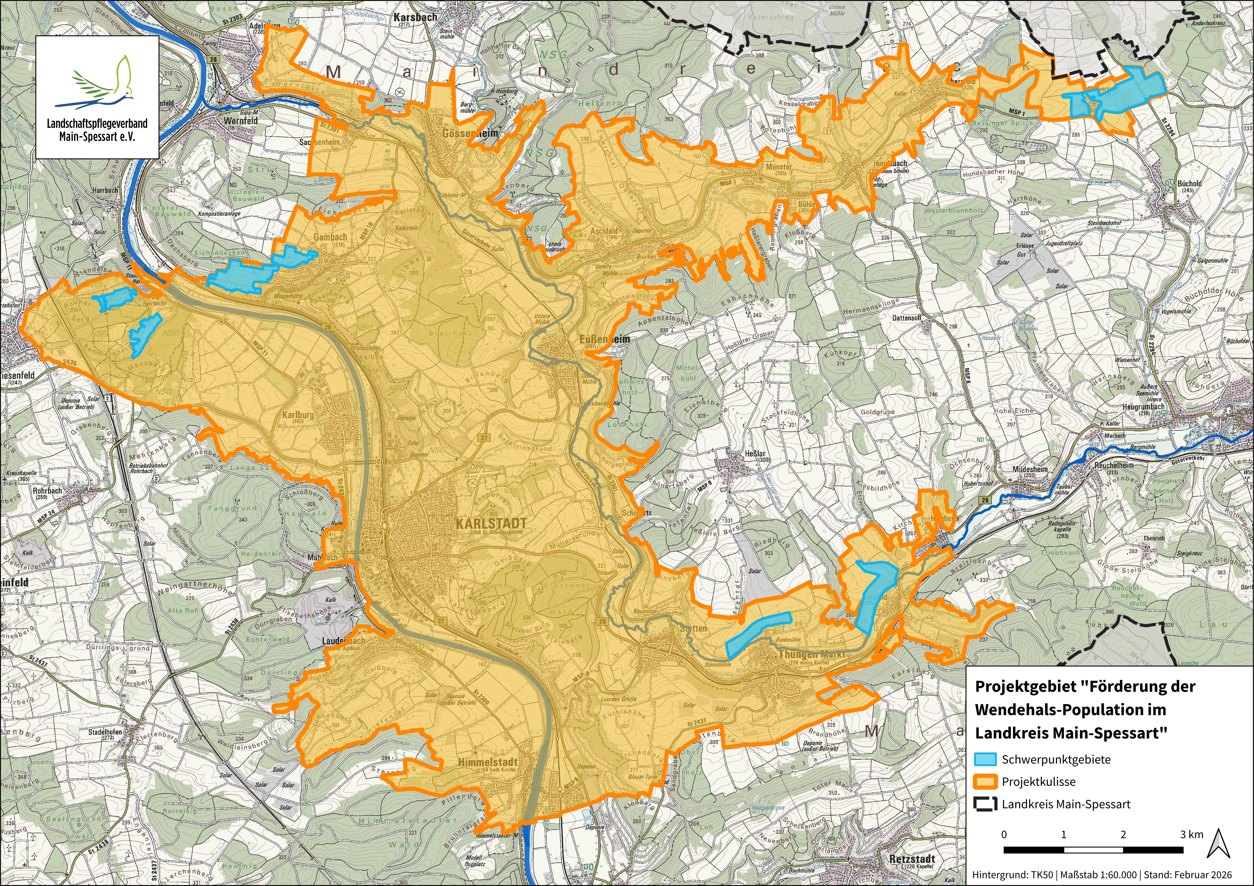 Ziel des Projekts ist die Förderung des vom Aussterben bedrohten Wendehalses im Landkreis Main-Spessart. Die Spechtart stellt hohe Ansprüche an ihren Lebensraum und benötigt eine vielgestaltige, (halb)offene Kulturlandschaft mit Streuobstwiesen, Magerrasen, Hecken- und Saumstrukturen. Geeignete Habitatstrukturen sind durch Nutzungsintensivierung und -aufgabe selten geworden und kommen zudem meist nur verinselt vor.